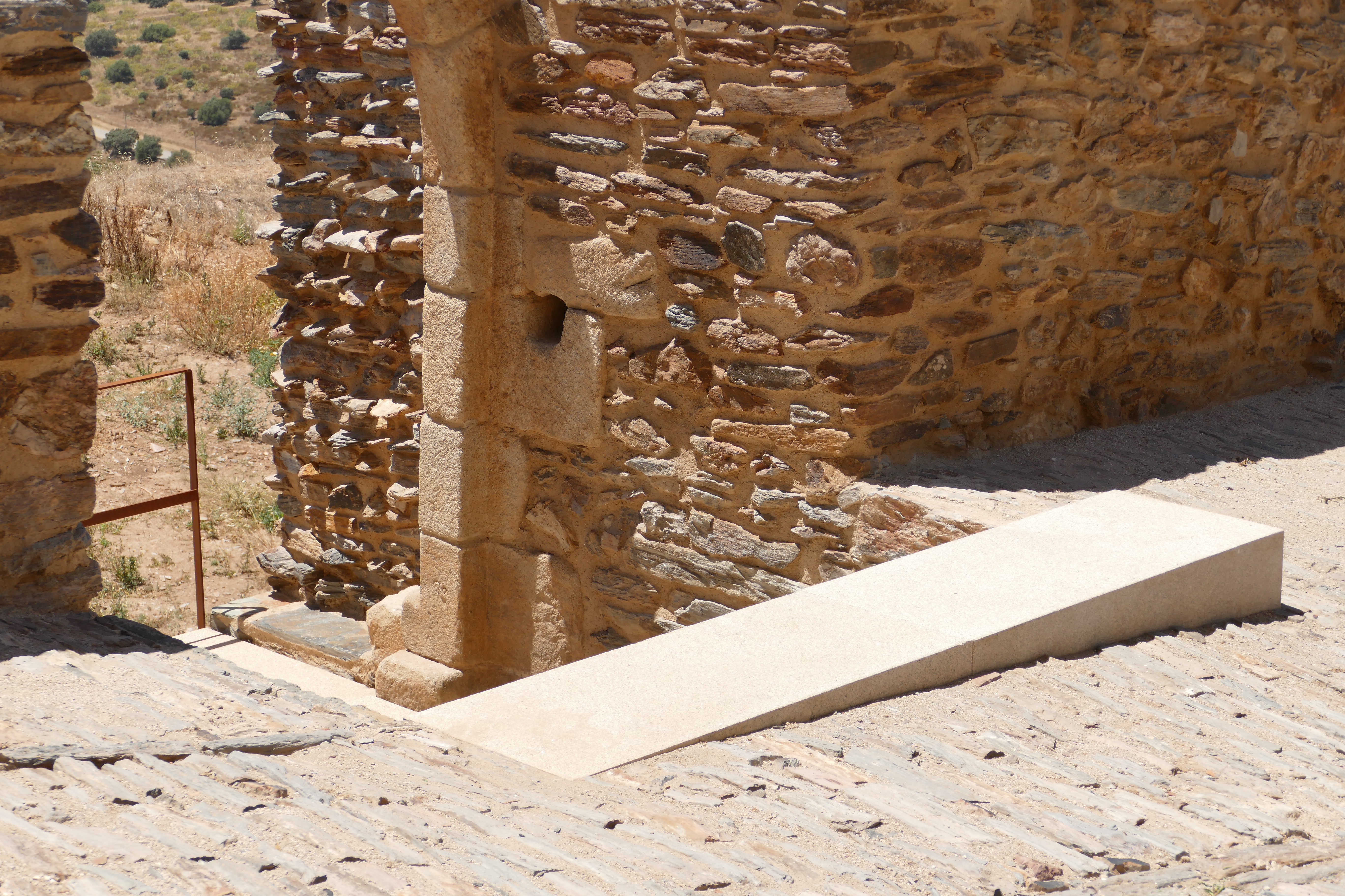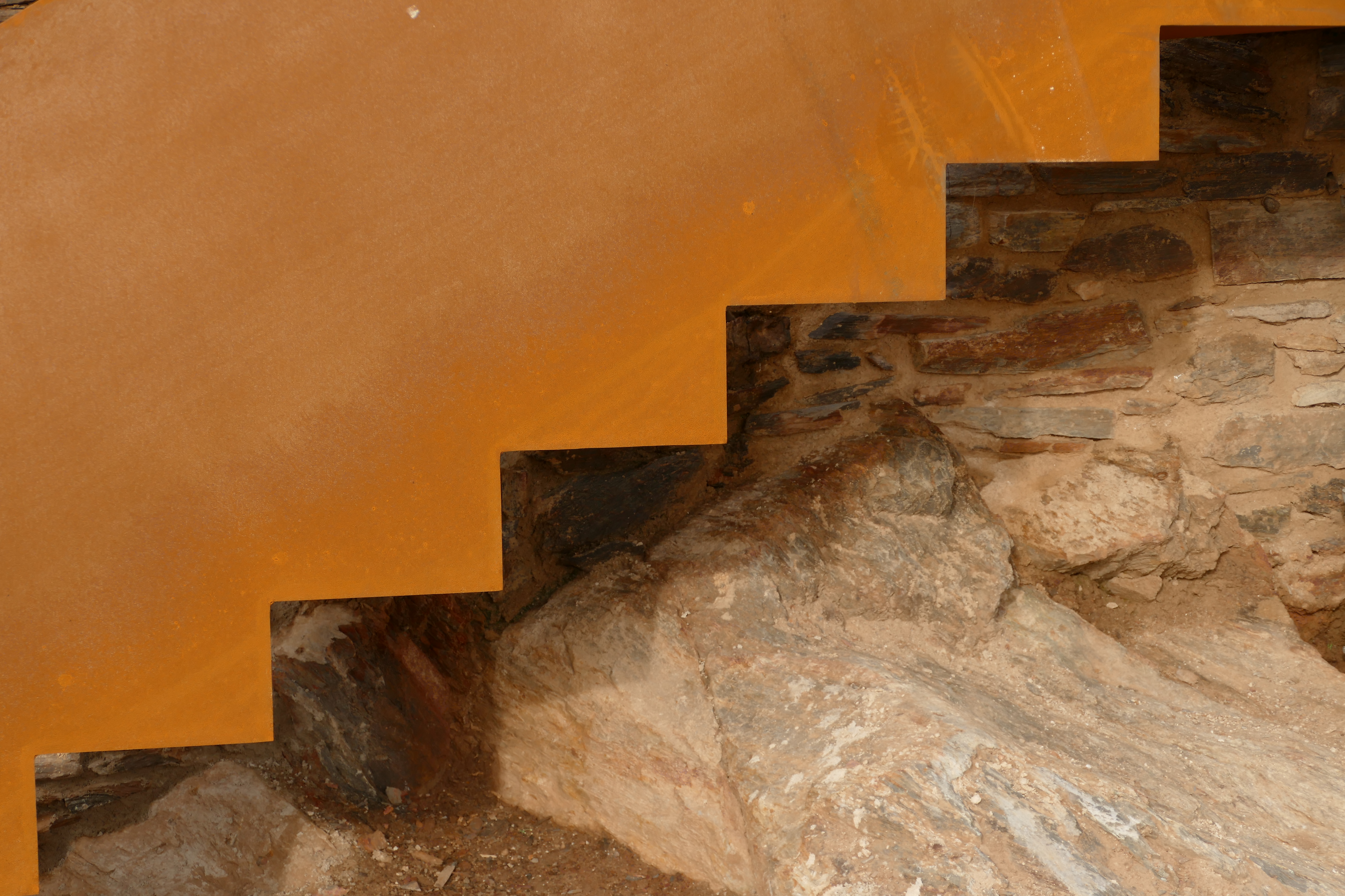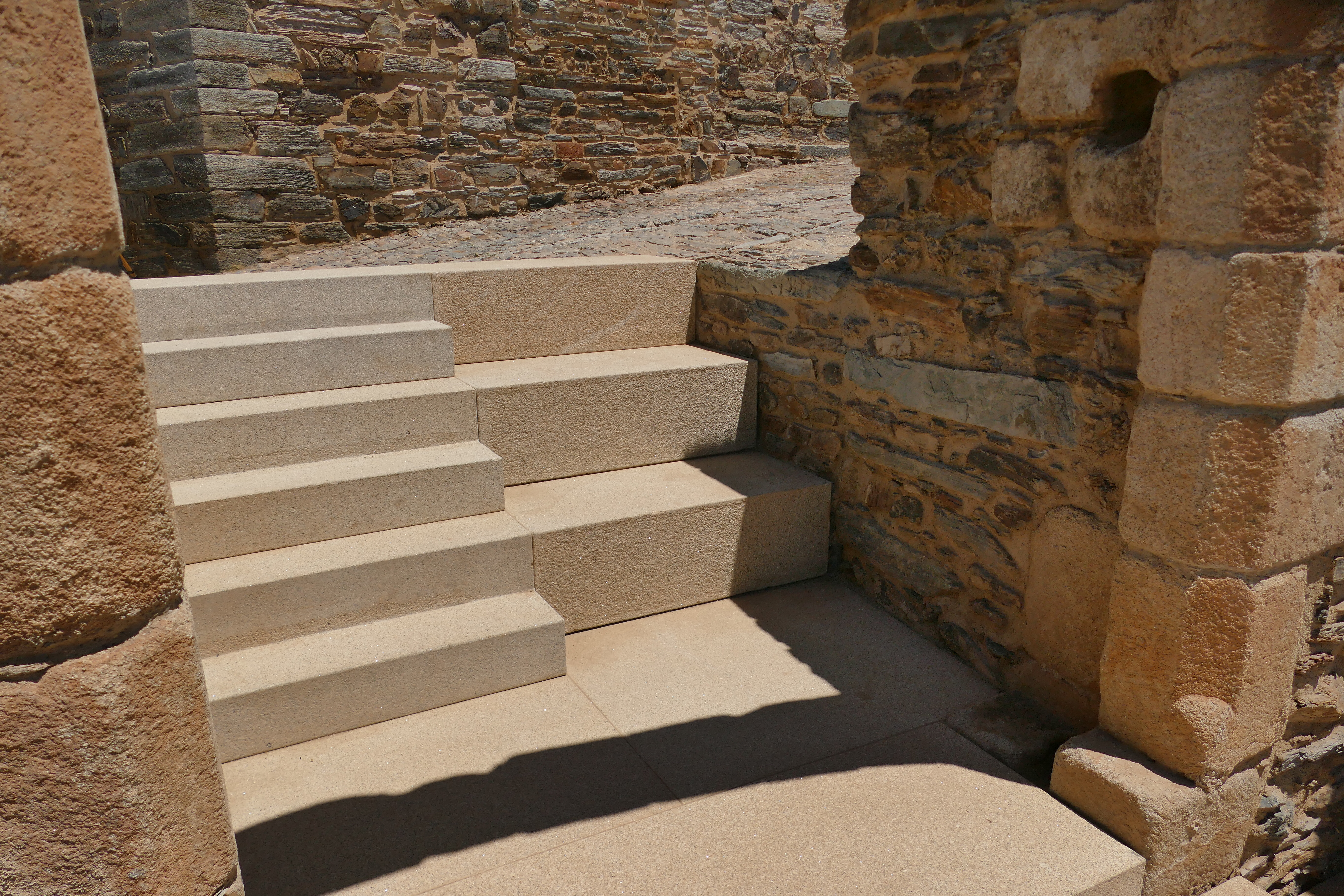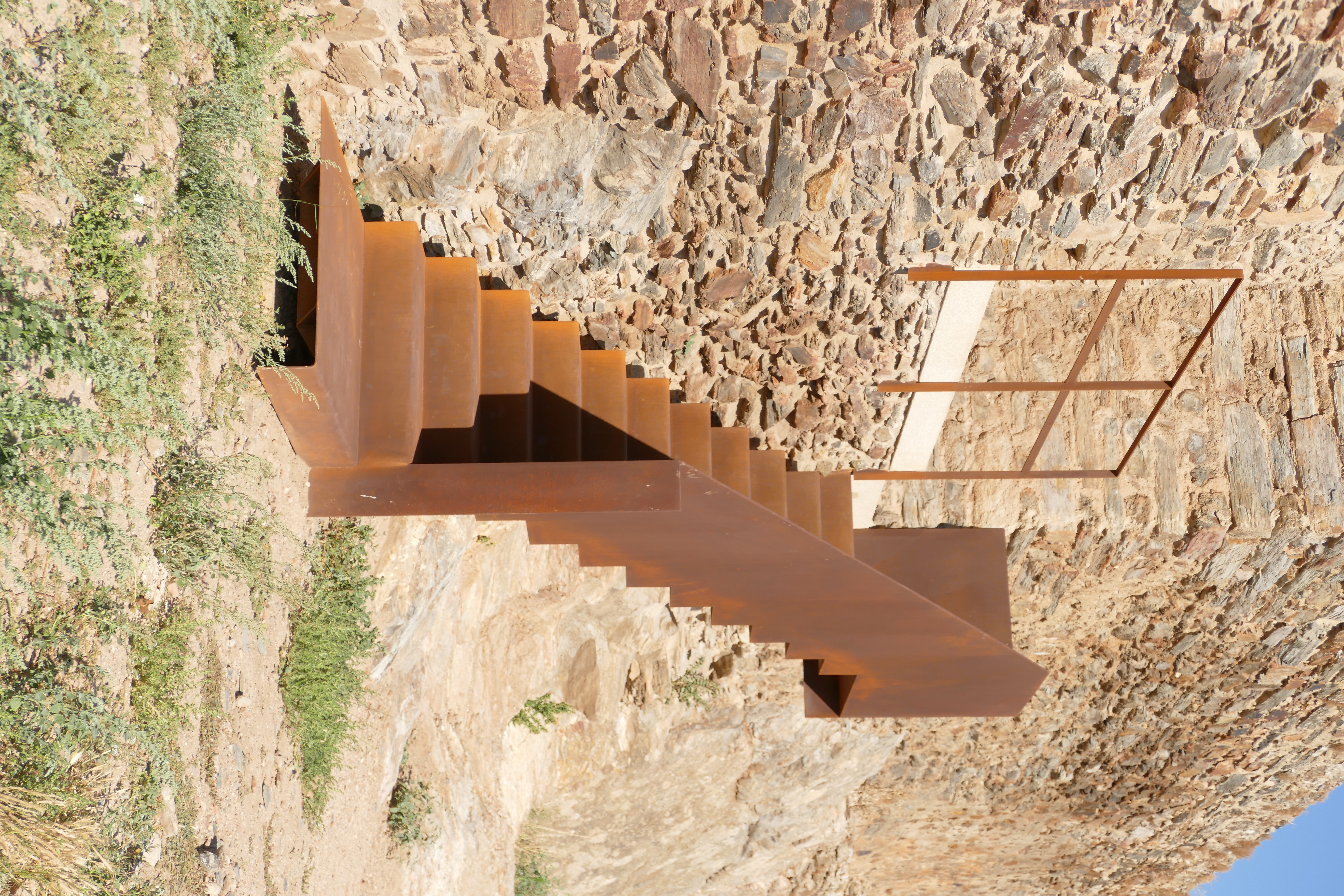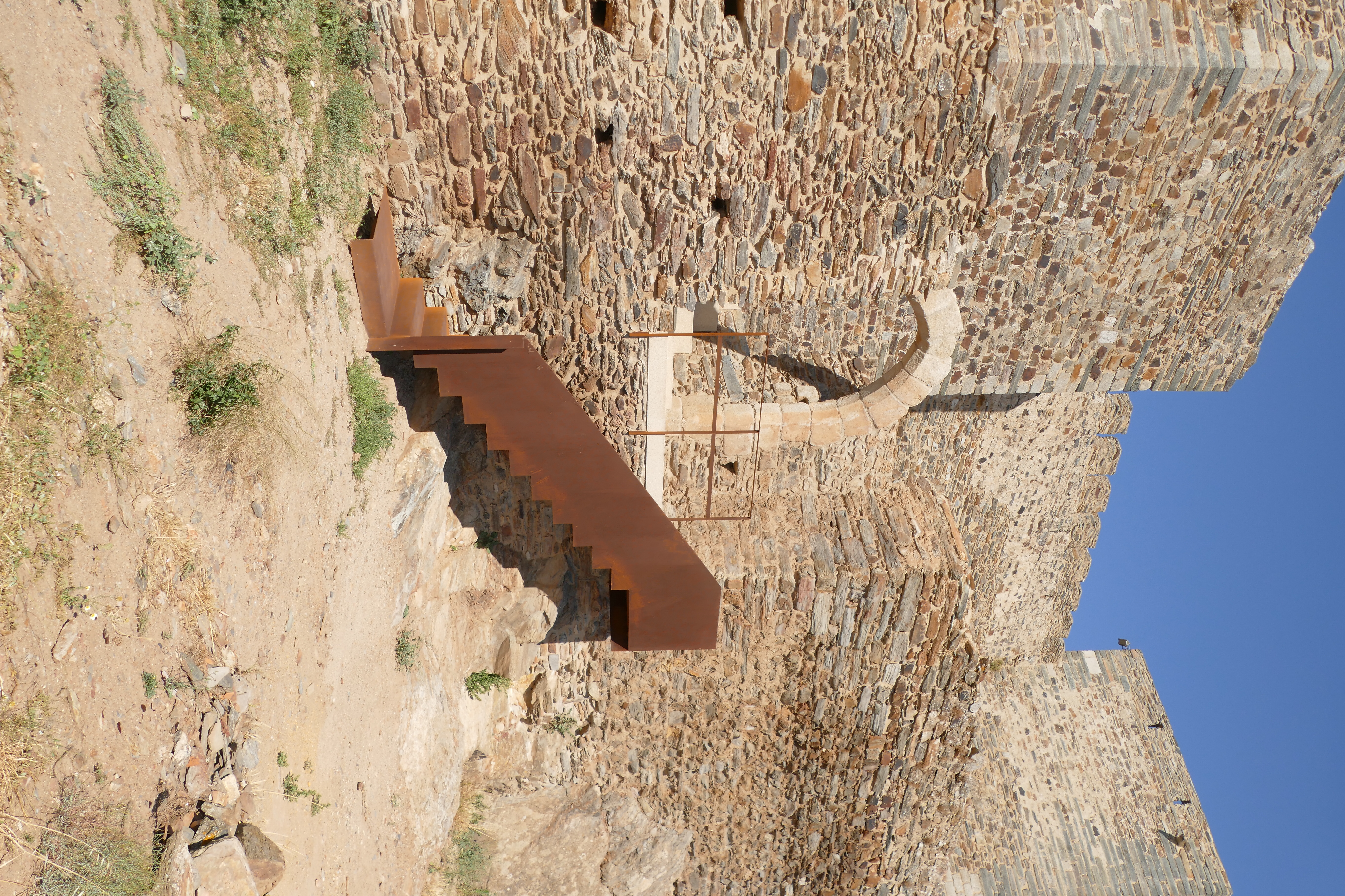 The new access stairs to the bastion landing is the result of the occasional dismantling of the masonry covering the frame of the span, thus widening the settlement of the initial landing and configuration of a staircase with a new design and new materiality (granite and corten steel), allowing to distinguish between what is new and what is authentic and integral, meaning an harmony in integration, but totally reversible.