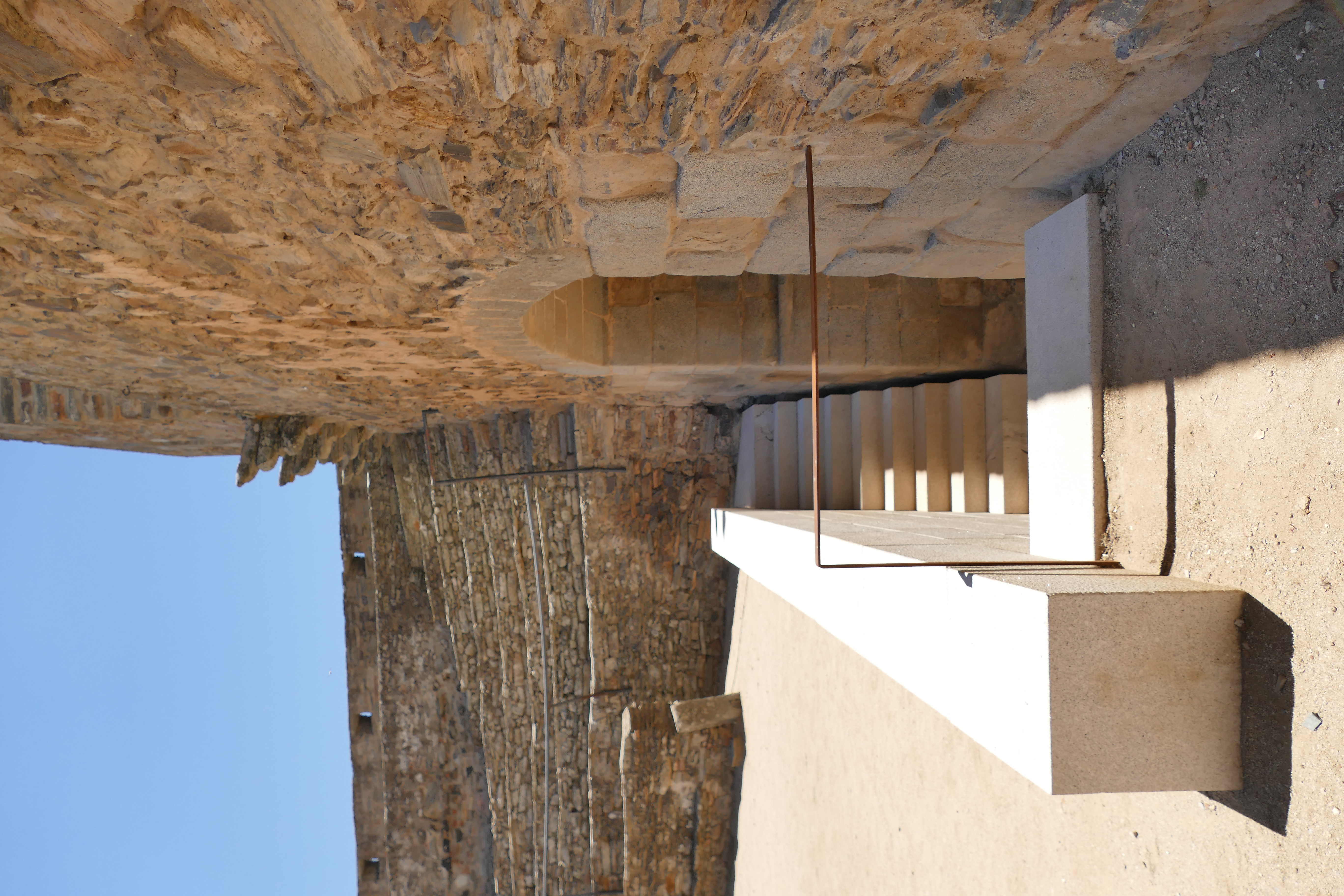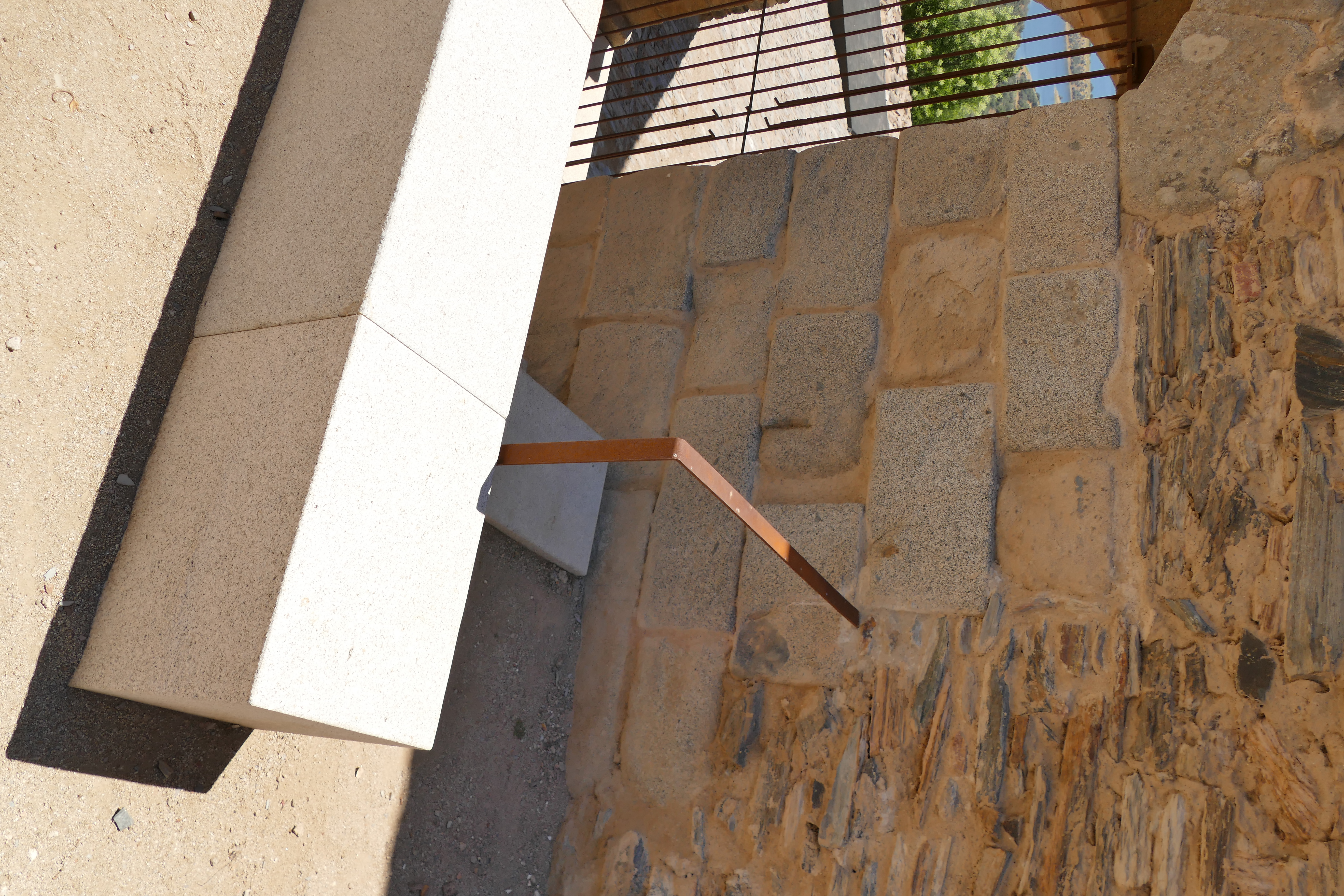 The materialization of this new staircase solution is made with granite masonry, the same materiality as all the Portas do Castelo, with the settlement levels always above the pre-existing remains, without interference with the original archaeological remains and structures, allowing easy dismantling. future if the reversibility of this new construction is intended.