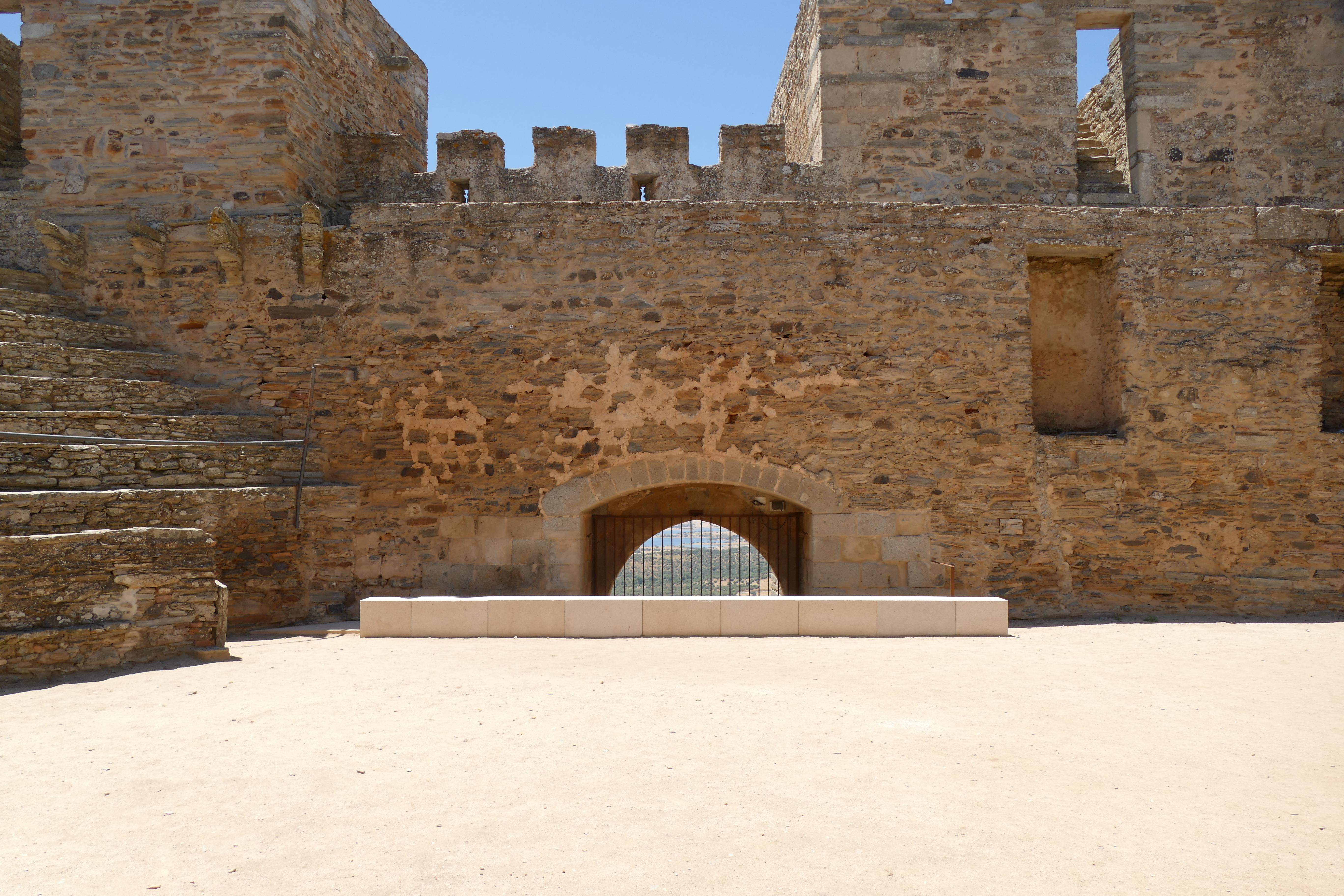 The excavations at the Porta de Armas allowed the full exposure of the doorway to be exposed, revealing the original threshold and designing a new staircase with access from inside the Castle. The solution seeks to completely free the door arch, replacing the original threshold, defining a level that allows us to understand the pre-existence of the old “porch” in the square of arms and referring the new access stairs to the level of the current arena to a plan further back, with a deployment very close to the original. This allows a full reading of the stonework of the door arch and a better understanding of the previous spatialities, allowing the perception of the original solution of the staircase leading to the Plaza de Armas.