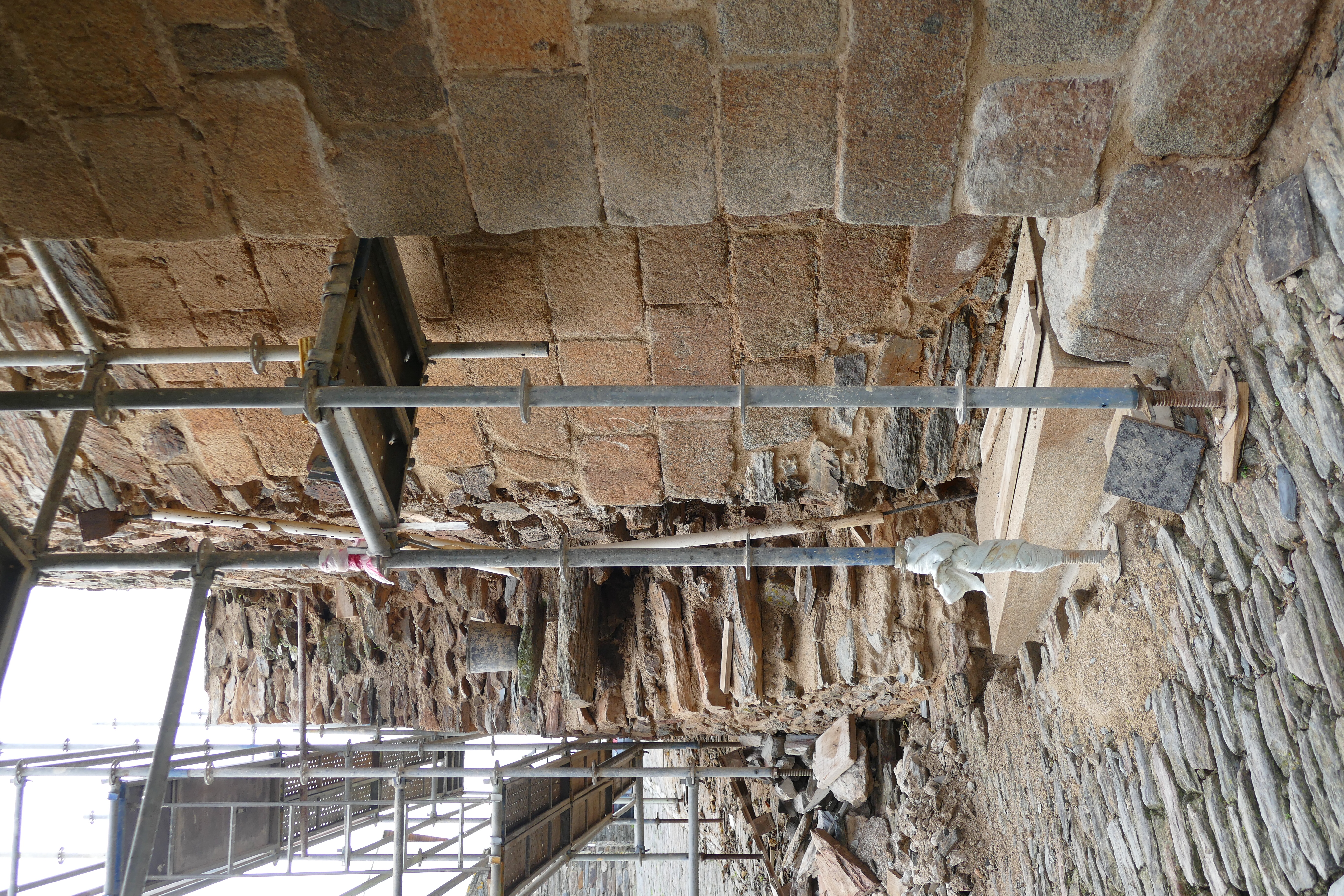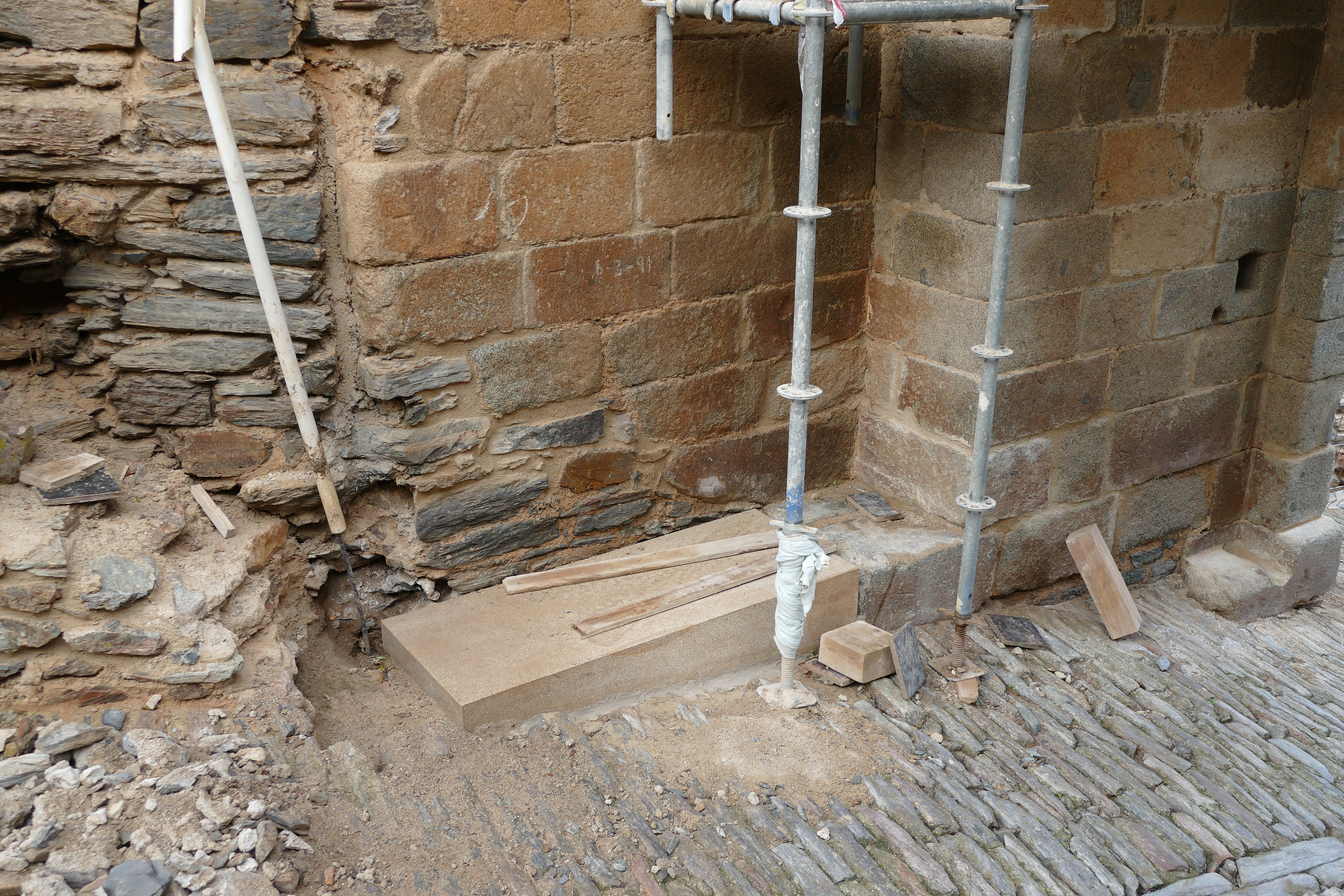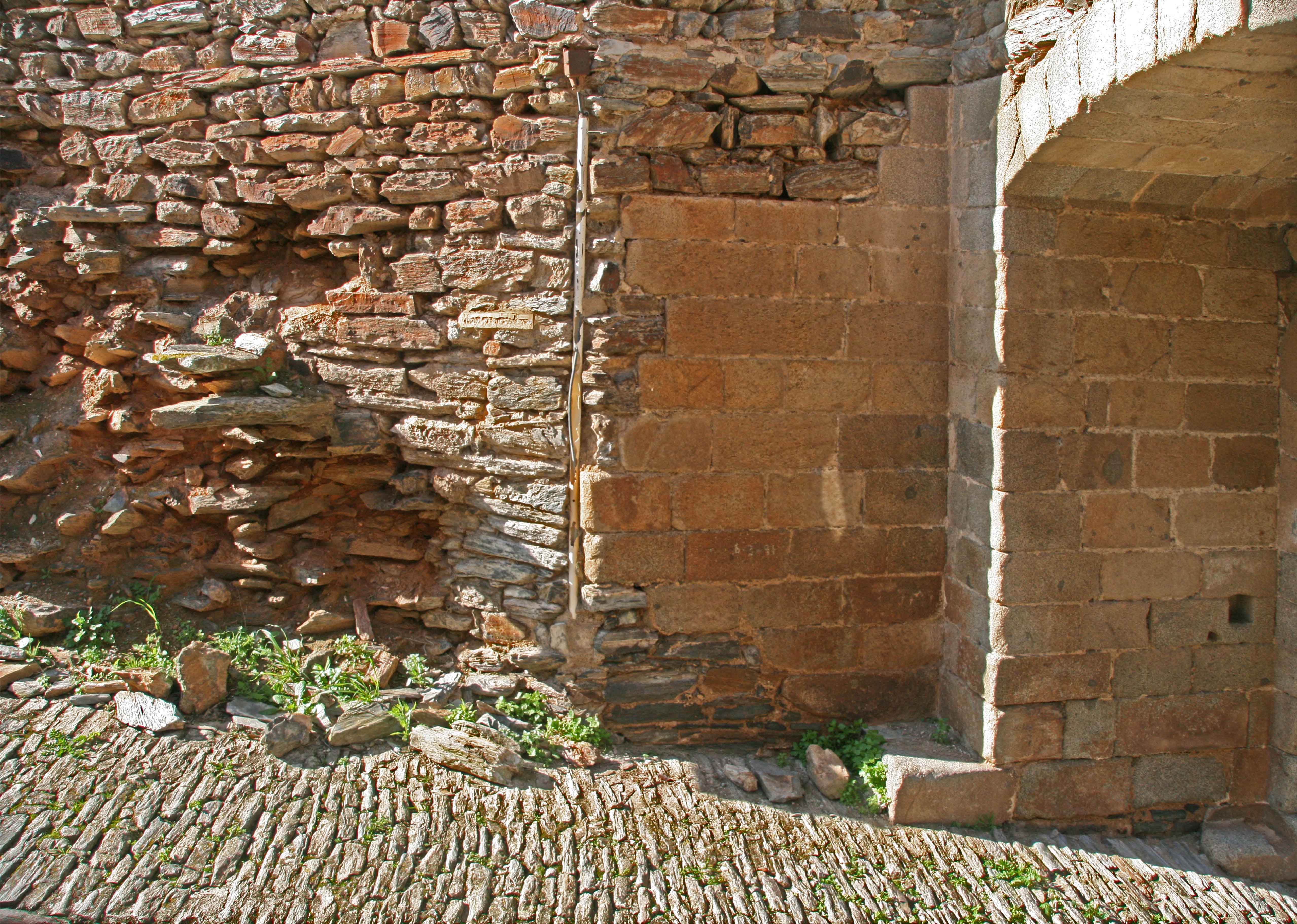 These points are normally defined by adjoining firing stairs built directly into the thickness of the schist masonry of the wall, as is the case at the other gates of the town.