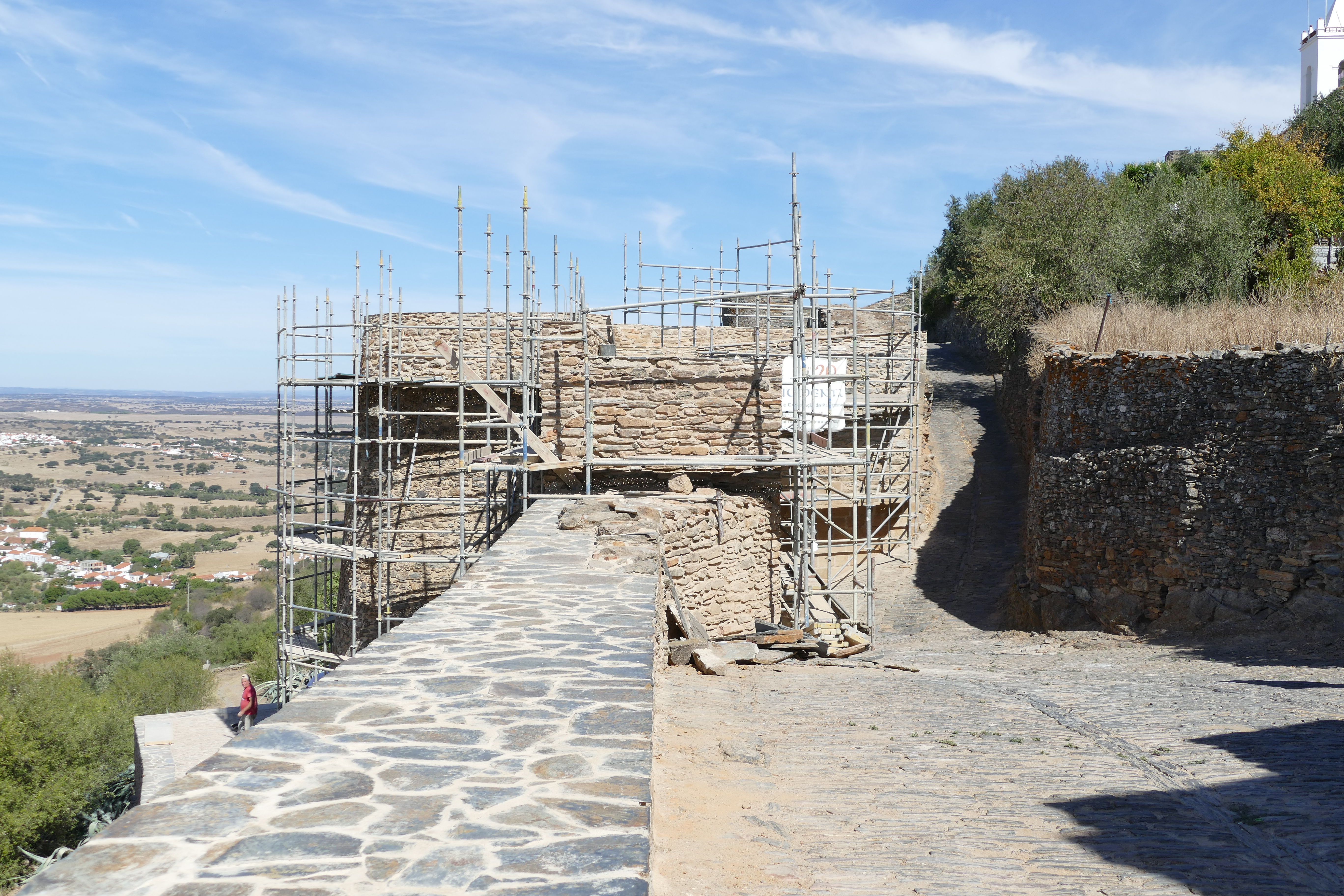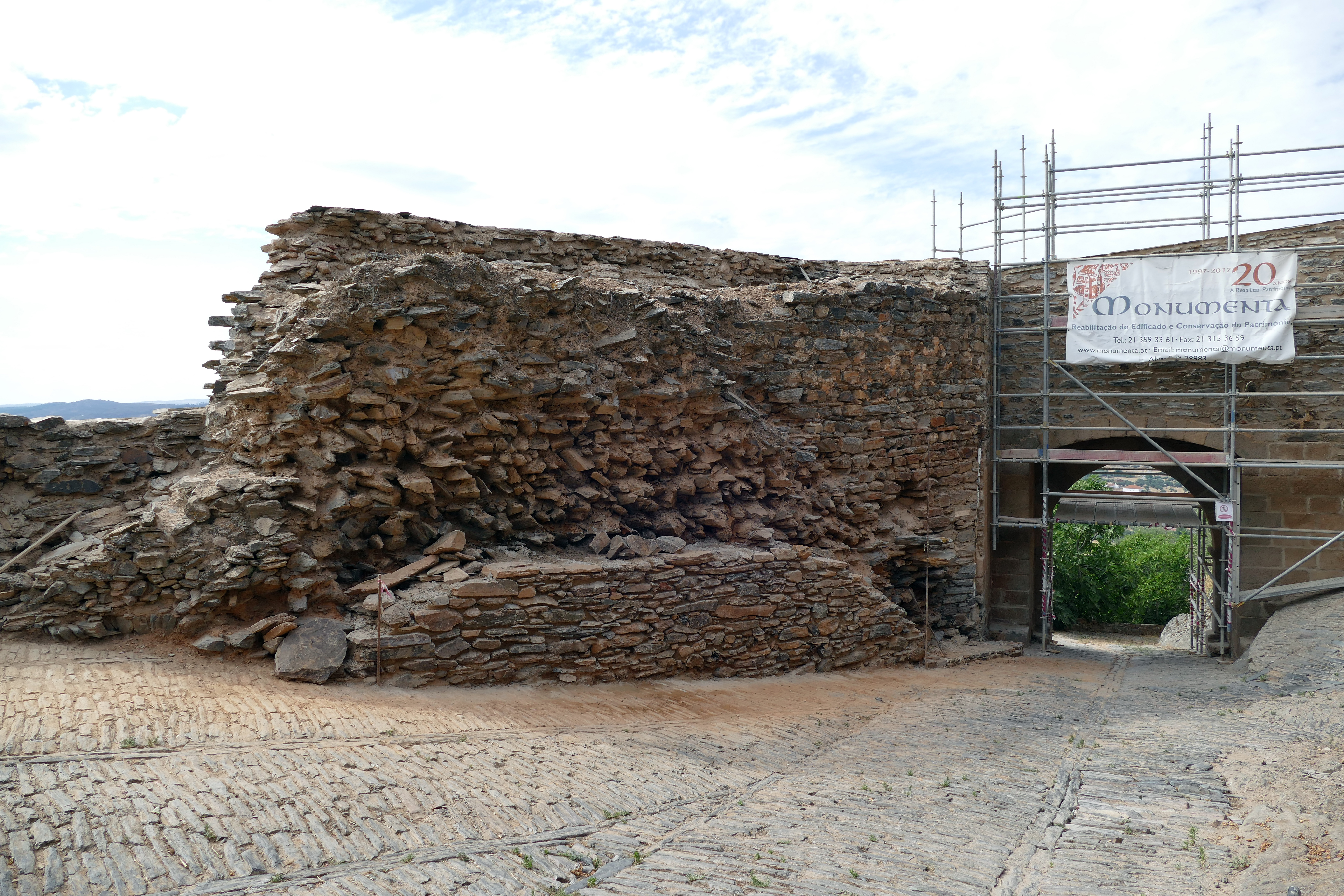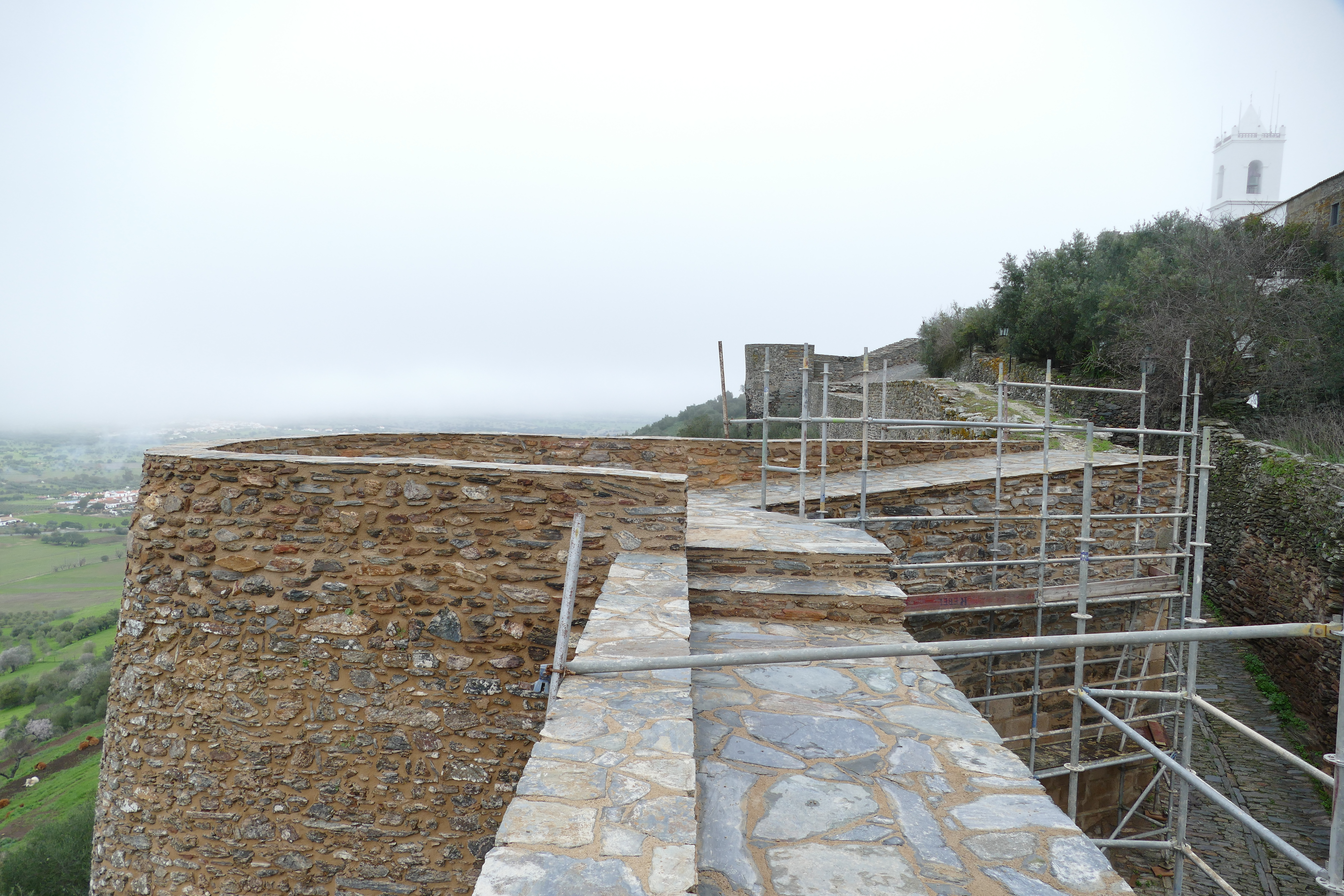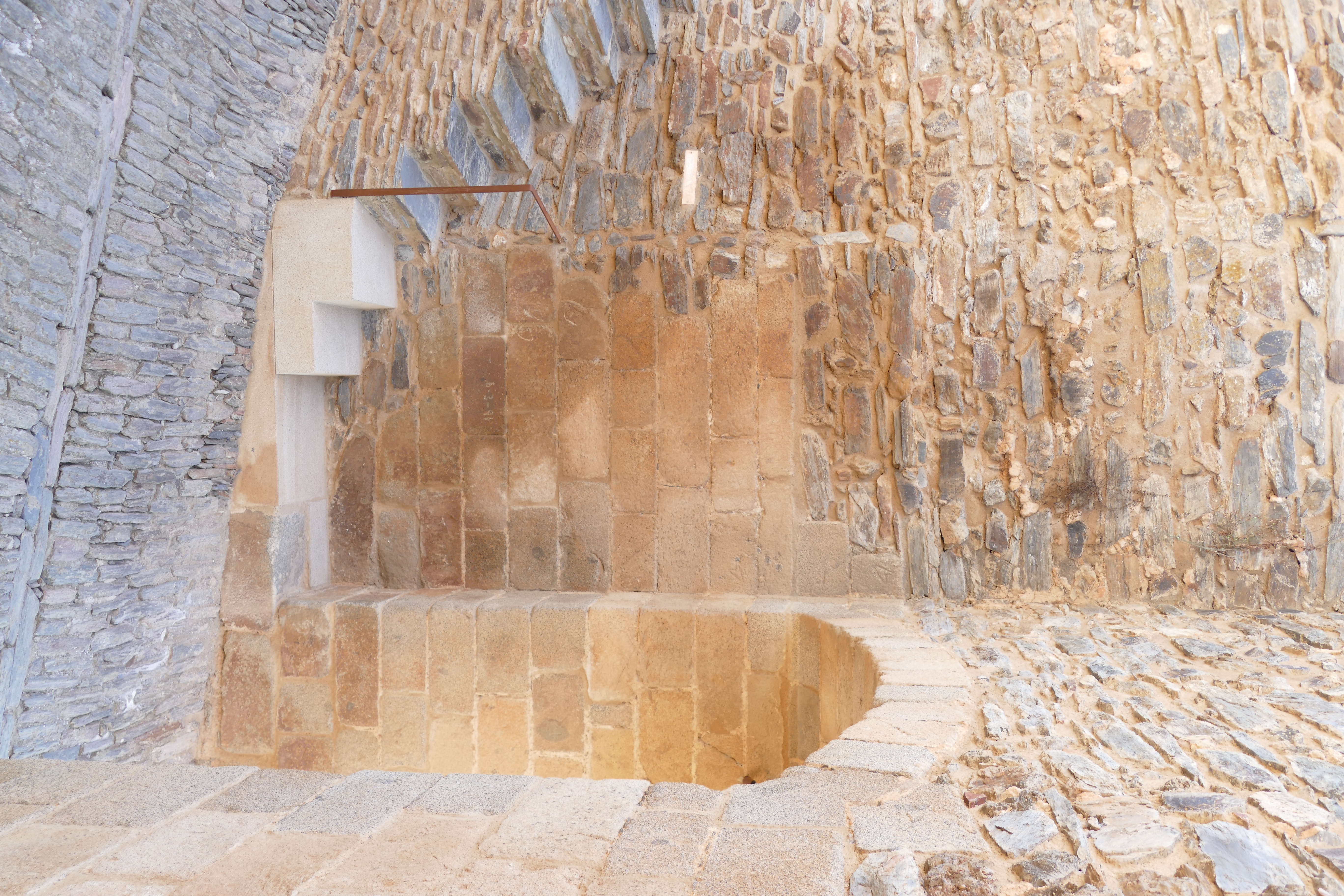 In conjunction with the structural consolidation work of the walls of Monsaraz and in particular the interior of the opening of the wall next to the Porta de Évora, the reconstruction and consolidation of this staircase in schist masonry was carried out, guaranteeing the restoration of its previous shape in an essential and simplified design. Once again the regularity of the equipment to be executed and the use of air lime-based mortar will allow this addition to be documented and distinguished from the original parts. The shale in the first steps is replaced by granite pieces due to resistance and durability needs.